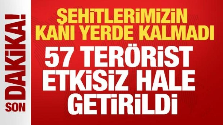 Son 24 saatte Irak'ın ve Suriye'nin kuzeyindeki operasyonlarda etkisiz hale getirilen terörist sayısı 57'ye yükseldi.