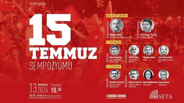 SETA, 13 Temmuz Cumartesi saat 10:30'da SETA Ankara'da düzenleyeceği "15 Temmuz Sempozyumu" programının akış listesini de paylaştı.