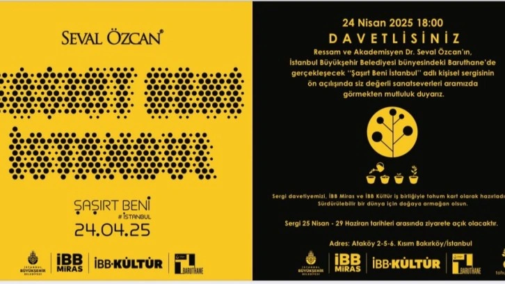 Dr. Seval Özcan'ın kişisel sergisi 'Şaşırt Beni İstanbul', 25 Nisan-29 Haziran tarihlerinde İstanbul Büyükşehir Belediyesi (İBB) bünyesindeki Baruthane'de sanatseverlerle buluşacak.
