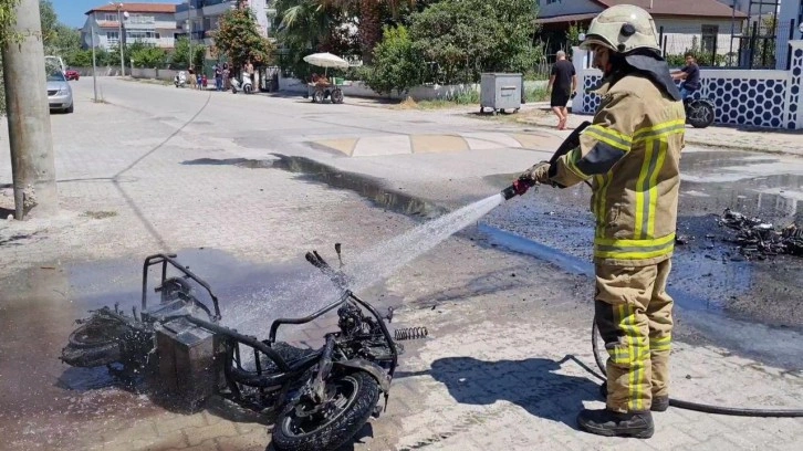İhbar üzerine olay yerine gelen itfaiye ekiplerince söndürülen yangında, elektrikli bisiklet kullanılmaz hale geldi.