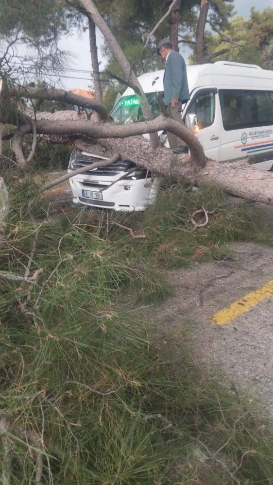 Aracın motor ve ön kaput kısmında hasar meydana geldi. Rüzgardan kaynaklandığı tahmin edilen kazan anında dolmuşta bulunan 1 kadın ve 1 çocuk yolcu, büyük bir korku yaşadı.