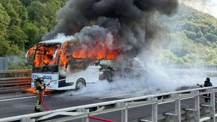 Durumu fark eden sürücü, otobüsü sağ şeride çekerek yolcuları tahliye etti.