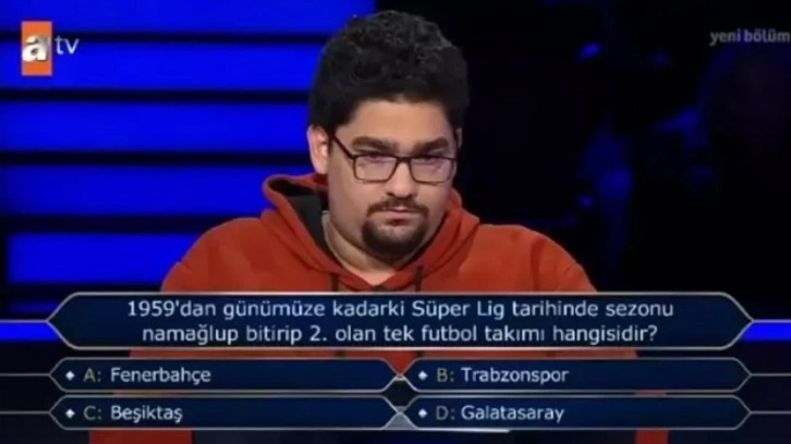 En son yayınlanan bölümde "1959'dan günümüze kadarki Süper Lig tarihinde sezonu namağlup bitirip 2. olan tek futbol takımı hangisidir? "sorusunun cevabı merak ediliyor.