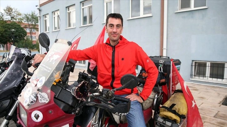 Renteria, AA muhabirine, yaklaşık 2 ay önce dünya turu yapmak için Şili'den motosikletiyle yola çıktığını söyledi.