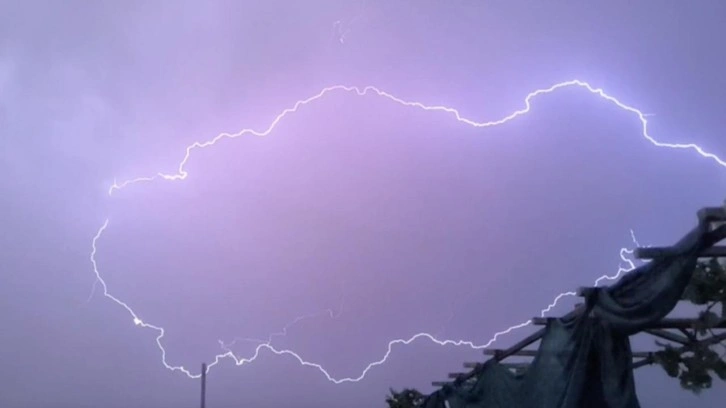 Bir vatandaş tarafından çekilen görüntüde, şimşek ışıklarının Türkiye haritasına benzer şekil oluşturduğu kameraya yansıdı.