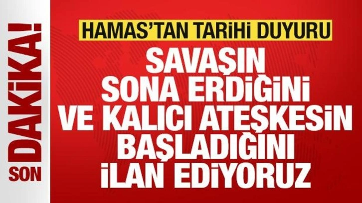 El-Hayye, "Bugün savaşın sona erdiğini ve kalıcı ateşkesin başladığını ilan ediyoruz" ifadelerini kullanarak, "Kardeş arabulucular ve ABD yönetimi, savaşın tamamen sona erdiğini teyit ederek bize güvence verdiler" dedi.
