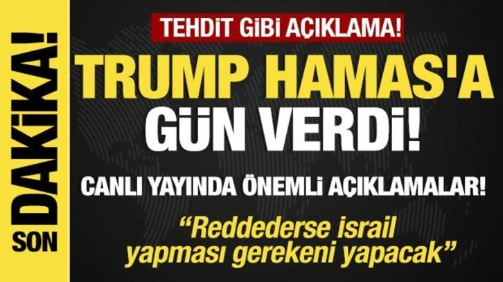 Trump açıklamalarının devamında "Hamas'a 3-4 gün süre veriyorum. Ne olacağını göreceğiz. Reddederse İsrail yapması gerekeni yapacak" dedi.