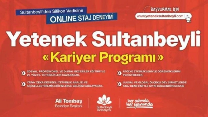 Sultanbeyli Belediyesi, üniversite öğrencileri ve mezun gençler için özel olarak geliştirdiği kariyer programı ile bir ilke imza atıyor. Yetenek Sultanbeyli Kariyer Programı, gençlere Silikon Vadisi’nden uluslararası şirketlere, Türkiye’nin en büyük holdinglerinden finans ve enerji devlerine kadar birçok kurumda online staj imkânı sunarak onları global iş dünyası ile buluşturuyor.