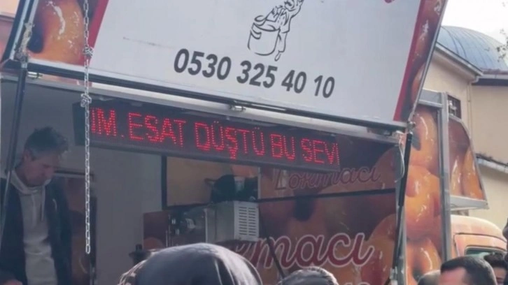 Beyoğlu'nun Kasımpaşa semtinde Suriyeli bir esnaf, aracıyla geldiği meydanda vatandaşlara ücretsiz lokma dağıtarak sevincini paylaştı.