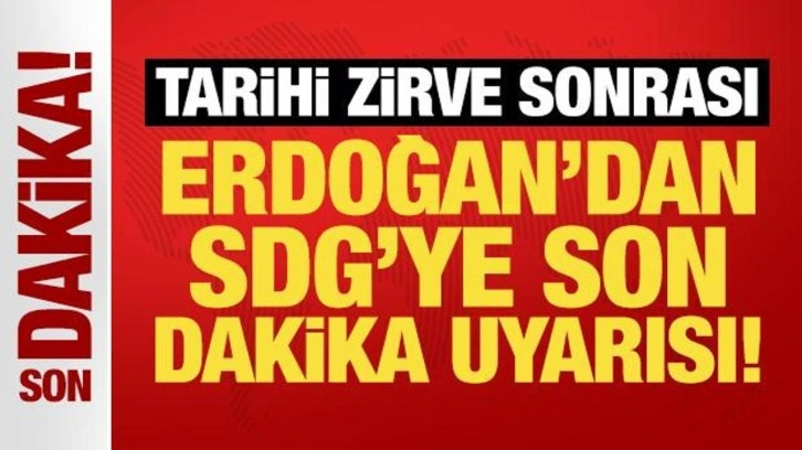 "Sık sık SDG'yi yanlış yollara tevessül etmemesi, Suriye’nin birlik ve bütünlüğüne destek olmaları konusunda da uyarıyoruz." diyen Erdoğan, "Umarız Suriye'nin toprak bütünlüğü bir ve beraber, müreffeh geleceğe ulaşmaları yolunda tutum takınırlar. SDG'nin Suriye ile bütünleşmesinin en kısa zamanda gerçekleşmesi, Suriye’nin kalkınma hamlelerini de hızlandıracaktır." ifadelerini kullandı.