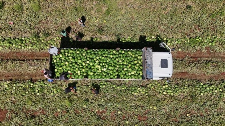 Tadı ve aromasıyla ünlü Diyarbakır karpuzunun hasadı başladı. Tarlada toplanan karpuz, başta anlaşmalı marketlerin birçok ildeki şubelerine kamyonlarla gönderiliyor. Aniden bastıran sıcaklarla karpuz hasadına hızlı başlanırken, ürün fazla olması nedeniyle tarlada kilosu 1-2 liradan satılıyor.