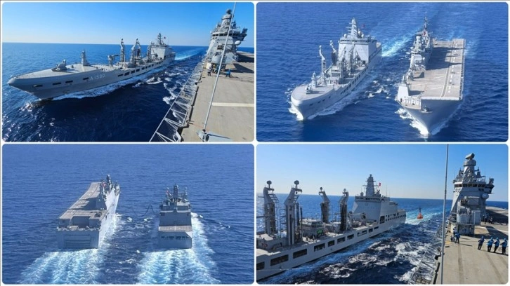 ????Aksaz AçıklarıTCG ANADOLU çok maksatlı amfibi gemimiz ile TCG DERYA denizde ikmal muharebe destek gemimiz, ilk defa "Denizde Akaryakıt ve Katı Yük İkmali" gerçekleştirdi.#MillîSavunmaBakanlığı pic.twitter.com/p8LtlLATWe— T.C. Millî Savunma Bakanlığı (@tcsavunma) November 11, 2024