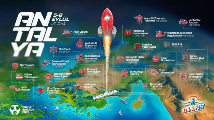 Antalya Anfaş Uluslararası Fuar ve Kongre Merkezi’nde 5- 8 Eylül tarihlerinde gerçekleştirilecek yarışma finallerinde belirlenen şampiyonlar, ödüllerini TEKNOFEST Adana’nın ana sahnesine çıkarak teslim alacaklar. Bu yıl ilk kez düzenlenen dijital dünyada Türkçe konuşan yapay zekâ geliştirme yarışması T3 AI Hackathon’da diğer yarışmalarla birlikte Antalya’da yapılacak.