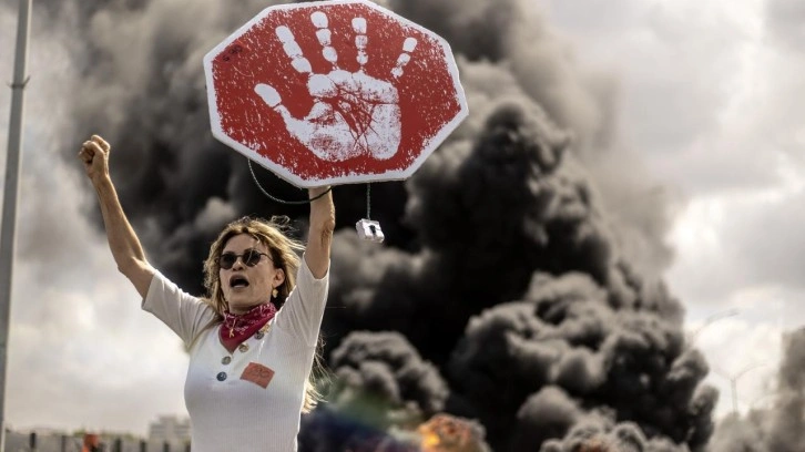 Göstericiler, ellerinde taşıdıkları pankartlarla Tel Aviv'deki 2. Otoyolu'nu trafiğe kapatarak Gazze’de bulunan İsraillilerin serbest bırakılması için anlaşmaya varılmasını talep etti.