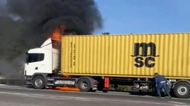 Tırdan dumanların yükseldiğini fark eden sürücü, aracını emniyet şeridine park etti. Bölgeden geçen oto kurtarıcı durumu 112 Acil Çağrı Merkezi’ne bildirdi.