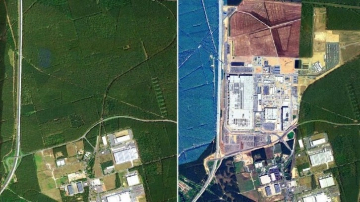 Uydu analizlerine göre, Berlin yakınlarında inşa edilen Tesla fabrikasında yaklaşık 500 bin ağaç kesildi. Almanya'daki fabrikanın inşası oldukça tartışmalı oldu ve önemli protestolara yol açtı.
