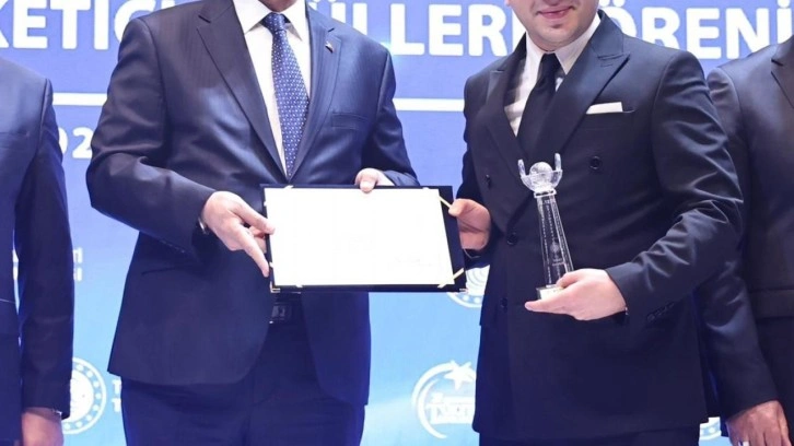 Mustafa Pala ödülünü Ticaret Bakanı Prof. Dr. Ömer Bolat'ın elinden aldı.