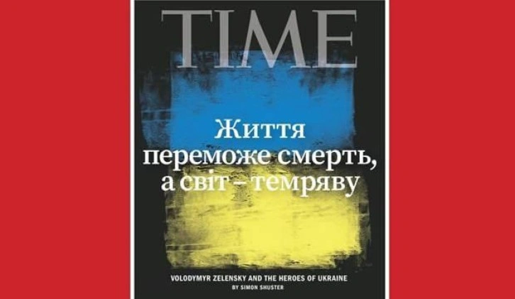 Dünyaca ünlü Amerikan dergisi TIME, son sayısında Ukrayna bayrağının renklerine ve ülkenin Devlet Başkanı Volodimir Zelenskiy'in sözlerine yer verdi.