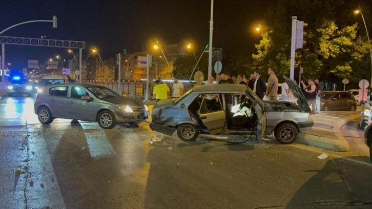 Tofaş marka otomobil çarpmanın etkisiyle kaldırıma çıkarak, ortadan büküldü. İhbar üzerine bölgeye polis ve sağlık ekipleri sevk edildi.