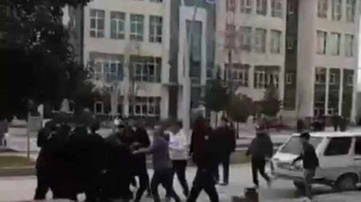 Tokat'ta adliye önünde husumetli iki grubun sopalı ve tabureli kavgası cep telefonu kamerasına yansıdı. Olayla ilgili 9 kişi gözaltına alındı.