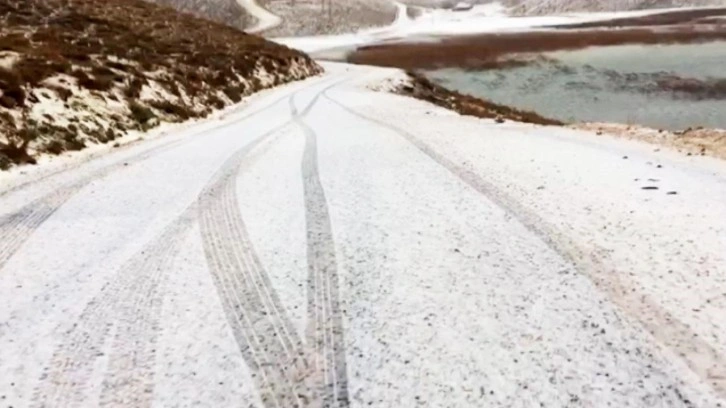 Toroslar'ın Geyik Dağı eteklerindeki Taşeli Platosu'nda yaklaşık 2350 rakımdaki Eğrigöl’e mevsimin ilk karı düştü.