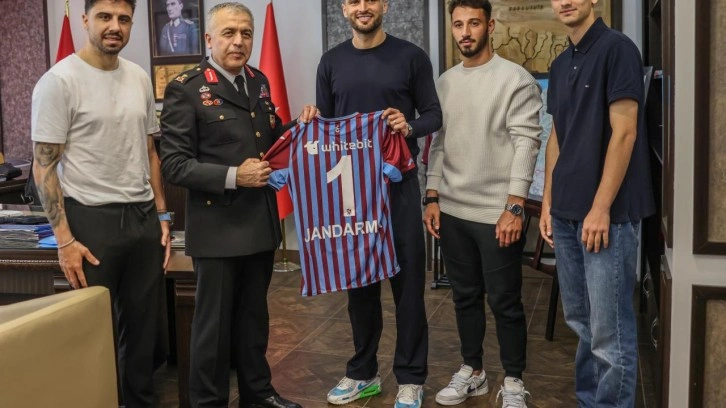 Trabzonspor Yönetim Kurulu üyeleri Coşkun Öztürk ve Fatih Solak ile bordo-mavili futbolcular Okay Yokuşlu, Ozan Tufan, Arif Boşluk ve Salih Malkoçoğlu, Jandarma Teşkilatının kuruluş yıl dönümü kapsamında Trabzon Jandarma Komutanlığı'nı ziyaret etti.