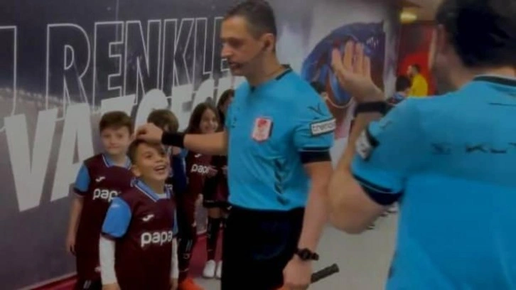 Trendyol Süper Lig'in 23. haftasında Trabzonspor, Eyüpspor'u konuk etti. Karşılaşma öncesi soyunma odası çıkışında hakem Mehmet Türkmen, Trabzonsporlu çocuklarla selamlaştı.