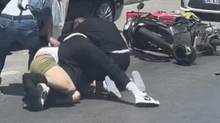 Olay öğle saatlerinde Zümrütevler Mahallesi Başöğretmen Caddesi üzerinde meydana geldi. Trafikte aynı yöne seyreden motokurye ile bir otomobildeki 2 kişi arasında henüz bilinmeyen bir sebeple tartışma çıktı.