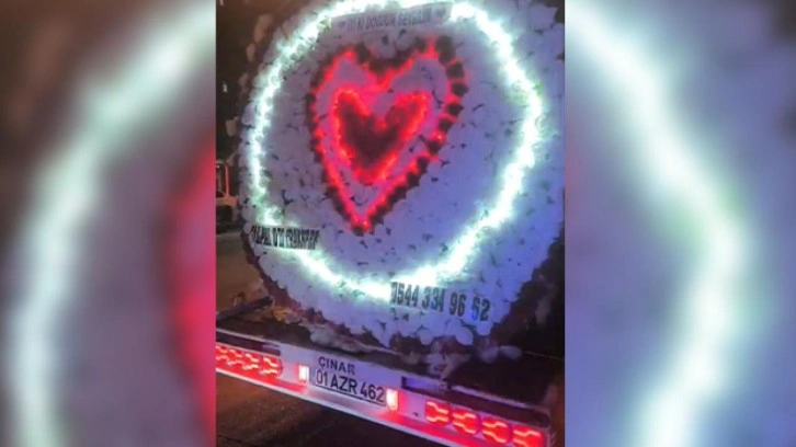 Yapılan kontrollerde aracın sürücüsü E.Ç.'nin (24), hem aykırı ışık donanımı kullandığı hem de yüksek sesle müzik açtığı tespit edildi. Arkasında "İyi ki doğdun sevgilim" yazılı ışıklı çiçek yer aldığı görülen çekicinin amacı dışında kullanıldığı da belirlendi.
