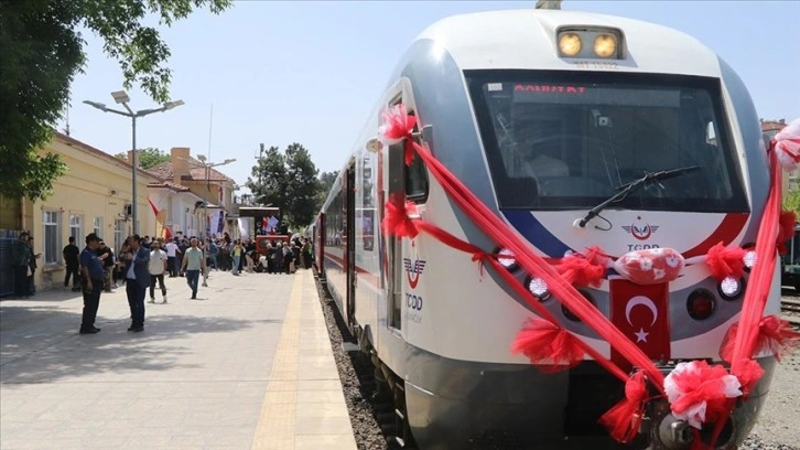 Burada düzenlenen törende, Vali Mustafa Taşolar ile protokol üyeleri, trenden inen yolcuları karşıladı.