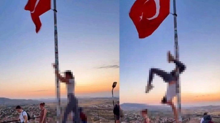 Uçhisar beldesinde meydana gelen olay, sosyal medyada gündem olmuştu. Yabancı uyruklu bir turist, beldenin yüksek bir mevkiinde bulunan Türk bayrağı direğine tutunarak uygunsuz hareketlerde bulundu. Bu hareketleri kayda alan genç kadın, sosyal medya hesabından paylaştı.