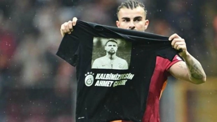 Sarı-kırmızılı futbolcu Abdülkerim Bardakcı, attığı golden sonra iki ekibin de formasını giyen merhum milli futbolcu Ahmet Çalık'ın fotoğrafının olduğu tişörtü kaldırdı.