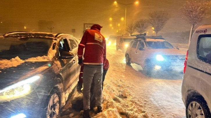 Erzurum- Çat- Bingöl, Erzurum- Bayburt, Erzurum- Aşkale- Erzincan karayollarında araçlarla mahsur kalanların yardımına Türk Kızılay ekipleri koştu.