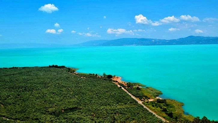 Bursa'da hava sıcaklarının artması sebebiyle meydana gelen plankton patlaması sonrası İznik Gölü turkuaz renge büründü.
