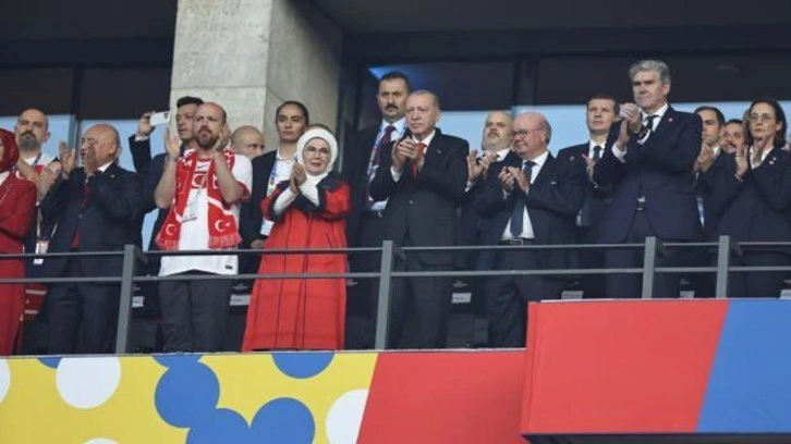 Öte yandan, Berlin Olimpiyat Stadı'ndaki maçı izleyen Erdoğan'ın yanında, Türk asıllı eski Alman milli futbolcu Mesut Özil de yer aldı.