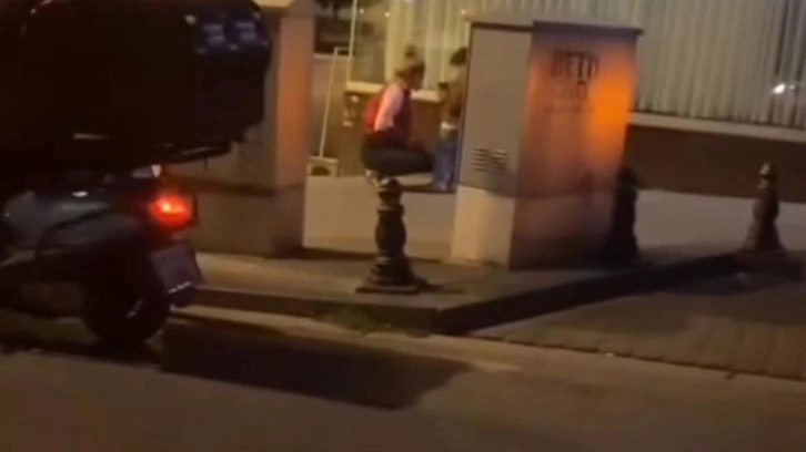 Çekilen görüntülerde kaldırım kenarında bir kadın şahsın, iki çocuğa bağırdığı ve ardından da erkek çocuğa vurup kulağını çektiği, çocukların ise korkuyla durduğu anlar görünüyor.