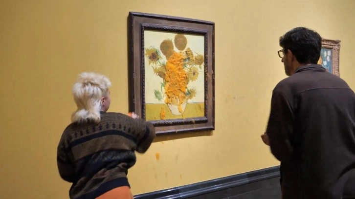 İngiltere'den fosil yakıtların geliştirilmesi ve üretimi için gelecekte verilecek tüm lisansların durdurulmasını talep eden sivil toplum kuruluşu ‘Just Stop Oil’ Londra’da Ulusal Galeri’de sergilenen ünlü iki Vincent Van Gogh tablosu ‘Ayçiçeklerine’ çorba fırlattı.