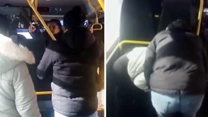 Eşini takip eden bir kadın, kocası ve sevgilisinin bindiği minibüse bindi. Minibüste kocasının sevgilisine küfürler savuran kadın, hıncını alamayarak tokat attı, yetmedi saçını çekip kadını yere attı.