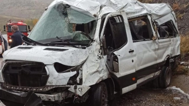 Gevaş'ta sürücüsünün kimliği belirlenemeyen minibüs, Kuskunkıran Tüneli çıkışında kontrolden çıkarak takla attı.