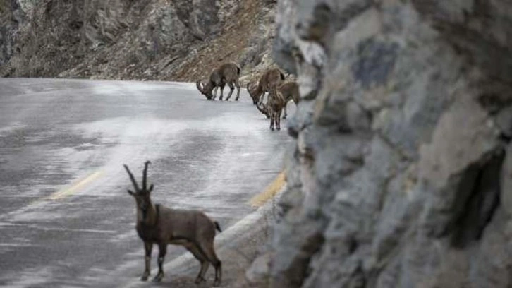 Kentte koruma altında olan yaban keçileri de kış aylarında karlı dağların zirvelerinden alçaklara inerek sıcak bölgelerde yaşamlarını sürdürüyor.