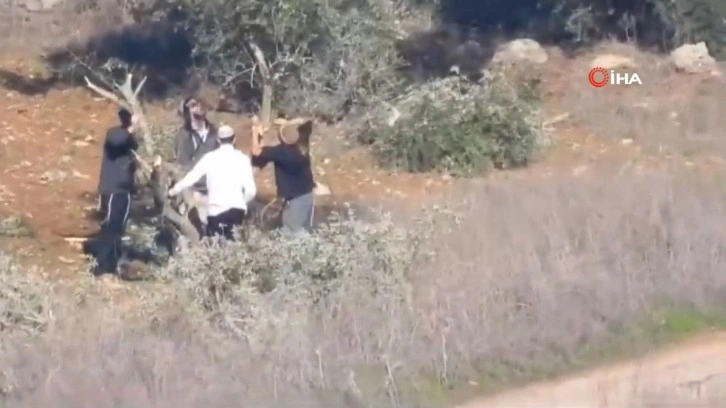 Filistin’in İsrail işgali altındaki Batı Şeria bölgesinde Yahudi işgalciler, İsrail askerlerinin korumasında gasp ettikleri Filistinlilere ait zeytin ağaçlarını kesti.