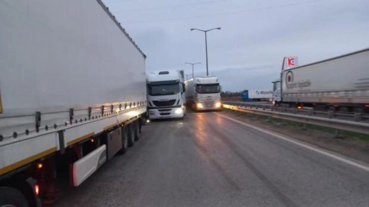 İhracat yüklerini, teslim edecekleri adreslere yetiştirmek için yola çıkan tır sürücüleri, bekleme yaptıkları tır parklarında cep telefonlarına gelen mesaj işe birden çıkış yapınca yollar tırlar ile doldu.
