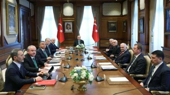 SON DAKİKA HABERİ: Cumhurbaşkanlığı Külliyesi'nde gerçekleştirilen toplantıya, kurul üyesi eski TBMM Başkanları Köksal Toptan, Binali Yıldırım, Cemil Çiçek, İsmail Kahraman, İsmet Yılmaz, Mehmet Ali Şahin ve Mustafa Şentop ile Cumhurbaşkanlığı İletişim Başkanı Fahrettin Altun, Cumhurbaşkanlığı Özel Kalem Müdürü Hasan Doğan ve Cumhurbaşkanlığı Genel Sekreteri Hakkı Susmaz katıldı.