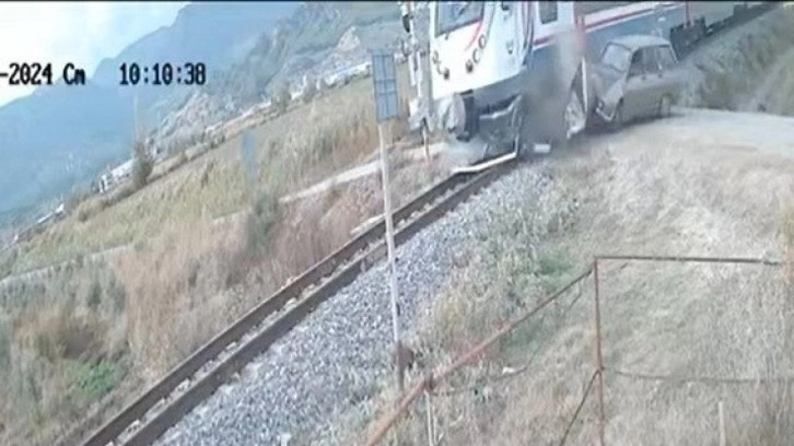 Öte yandan, kaza anı ise güvenlik kamerası tarafından anbean kaydedildi. Görüntülerde, otomobilin seyir halinde olduğu ve hemzemin geçide geldiğinde kapalı olan tan tanı son anda fark ettiği, panik yapıp rayların üzerinde durduğu görüldü.