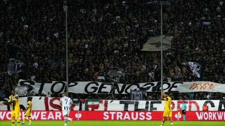 Selanik'in Toumba Stadı'nda oynanan karşılaşmada İsrail'in işgali altındaki Gazze'ye destek veren ev sahibi ekibin taraftarları tribünde "Soykırımı durdur" ve "İsrail'e kırmızı kart göster" yazılı pankartlara yer verdi.