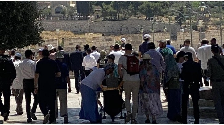 Kudüs İslami Vakıflar İdaresinden yapılan açıklamada, Filistin topraklarını gasbeden İsraillilerin büyük gruplar halinde ve İsrail polisinin koruması altında Mescid-i Aksa'ya baskın düzenlediği belirtildi.