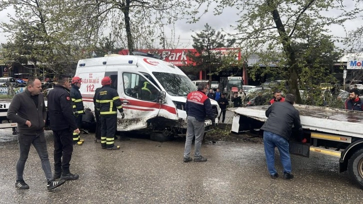 Zonguldak'ın Çaycuma ilçesinde M.E.G'nin (31) kullandığı 67 AU 479 plakalı ambulans, Sanayi Sitesi Işıklar mevkisinde Ö.G. (24) idaresindeki 59 AGK 968 plakalı otomobille çarpıştı. Kazada, otomobil sürücüsü ile ambulanstaki sağlık personeli B.A. (30) ağır yaralandı.